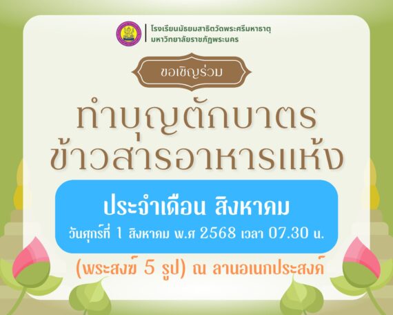 ขอเชิญร่วมกิจกรรม “ทำบุญตักบาตรข้าวสารอาหารแห้ง” ประจำเ