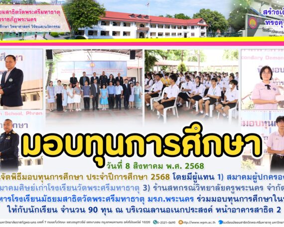 วันที่ 8 สิงหาคม พ.ศ. 2568โรงเรียนจัดพิธีมอบทุนการศึกษา