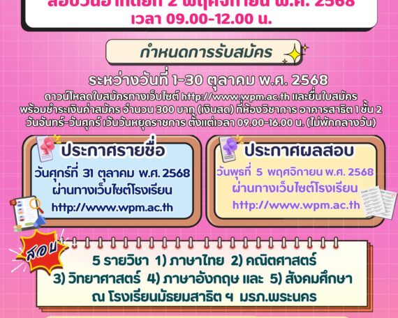 ประชาสัมพันธ์การสอบ PRETEST ม.1 ปี 2568โรงเรียนมัธยมสาธ