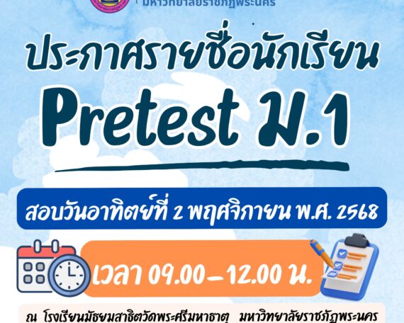 ประกาศรายชื่อนักเรียนที่มีสิทธิ์เข้าสอบ Pretest ระดับชั