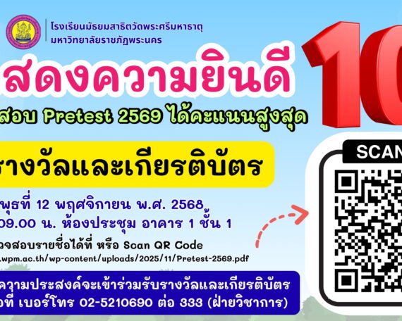 ขอแสดงความยินดีกับนักเรียนที่สอบ Pretest 2569 ได้คะแนนสูงสุด 10 อันดับแรก