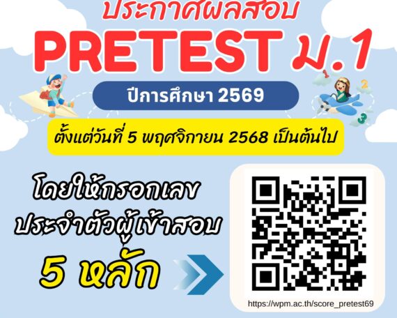 ประกาศผลสอบ PRETEST ม.1 ปีการศึกษา 2569โรงเรียนมัธยมสาธ