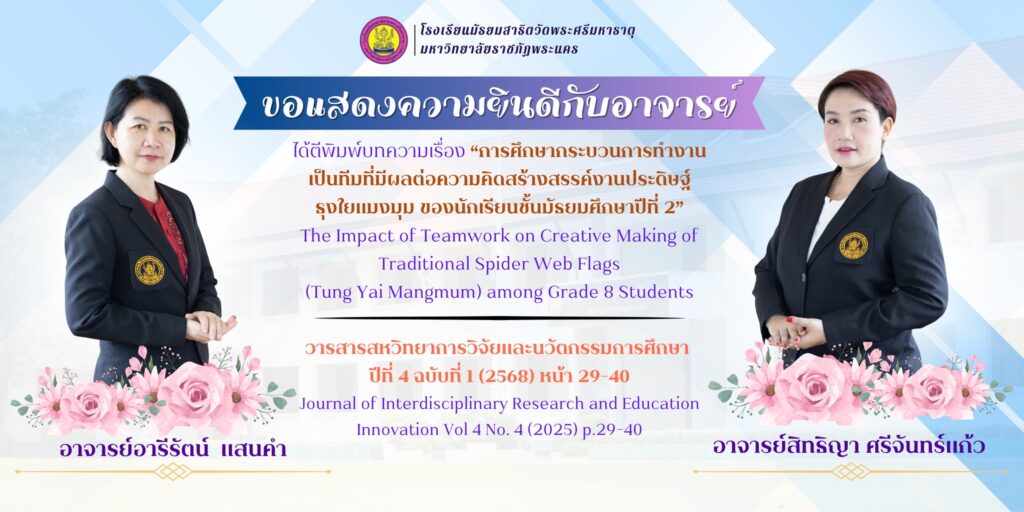 ได้ตีพิมพ์บทความเรื่อง “การศึกษากระบวนการทำงานเป็นทีมที่มีผลต่อความคิดสร้างสรรค์งานประดิษฐ์
