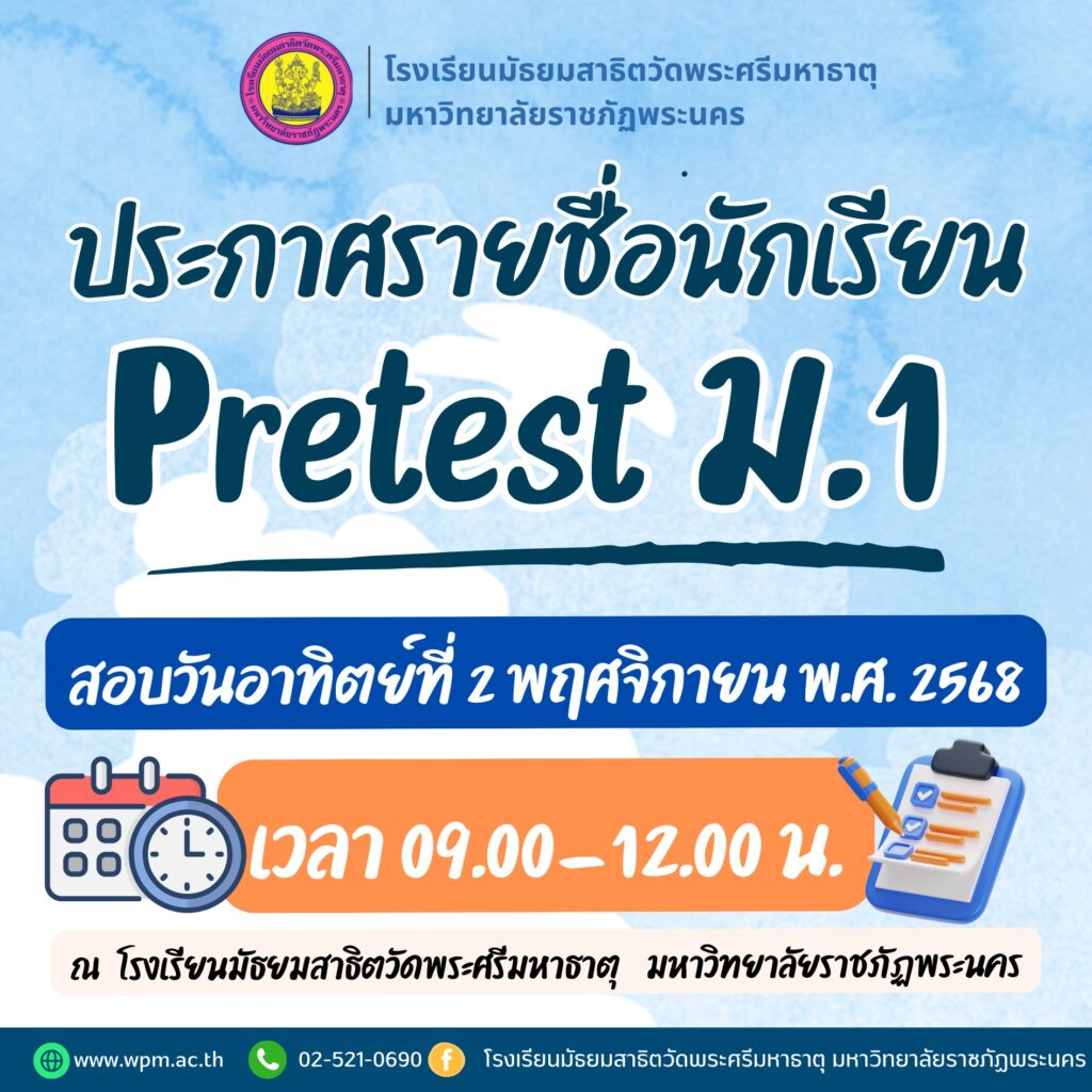 ตรวจสอบรายชื่อ https://www.wpm.ac.th/…/uploads/2025/10/Pretest-69-1.pdf