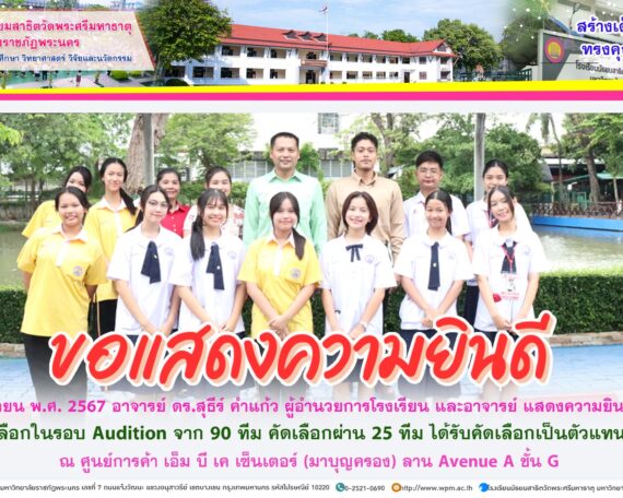 ขอแสดงความยินดีกับนักเรียนที่ผ่านการคัดเลือกนักกีฬาเยาวชนตัวแทนประเทศไทย