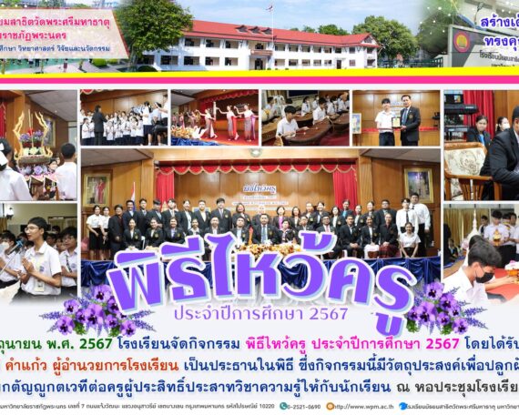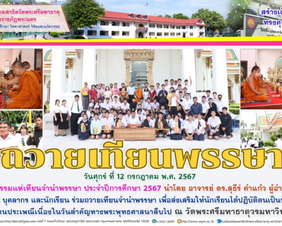 วันพุธที่ 31 กรกฎาคม พ.ศ. 2567 เวลา 08.30 น. โรงเรียนมั